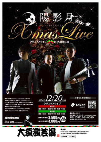 2025年12月20日(土)/ 大須演芸場にて / 出演:陽影月、スペシャルゲスト山田信晴(ドラム)/ 入場:前売り3500円、当日4000円(全席自由)